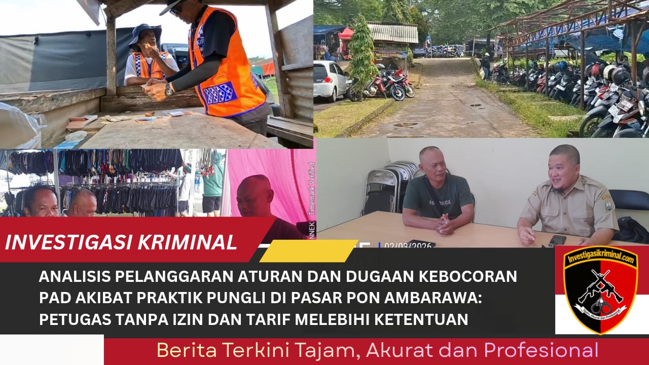 Semarang, 2 Maret 2026 – investigasikriminal.com – Praktik dugaan pungutan liar (pungli) yang mencolok dan melanggar aturan tegas terungkap di Pasar Pon Ambarawa, Kabupaten Semarang. Temuan tim media dan pengamat sosial membuktikan adanya pelanggaran serius dalam pengelolaan parkir dan penarikan biaya lapak yang secara langsung merugikan masyarakat serta berpotensi menyebabkan kebocoran besar pada Pendapatan Asli Daerah (PAD).