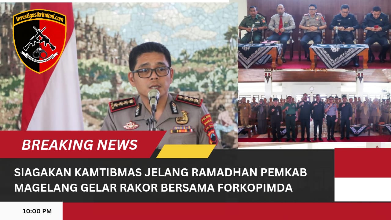 Polresta Magelang-Polda Jateng| investigasikriminal.com– Pemerintah Kabupaten (Pemkab) bersama unsur Forkopimda menggelar Rapat Koordinasi Lintas Sektoral dalam rangka Cipta Kondisi Keamanan dan Ketertiban Masyarakat (Kamtibmas) menjelang Bulan Ramadhan dan Idul Fitri 1447 H/2026.