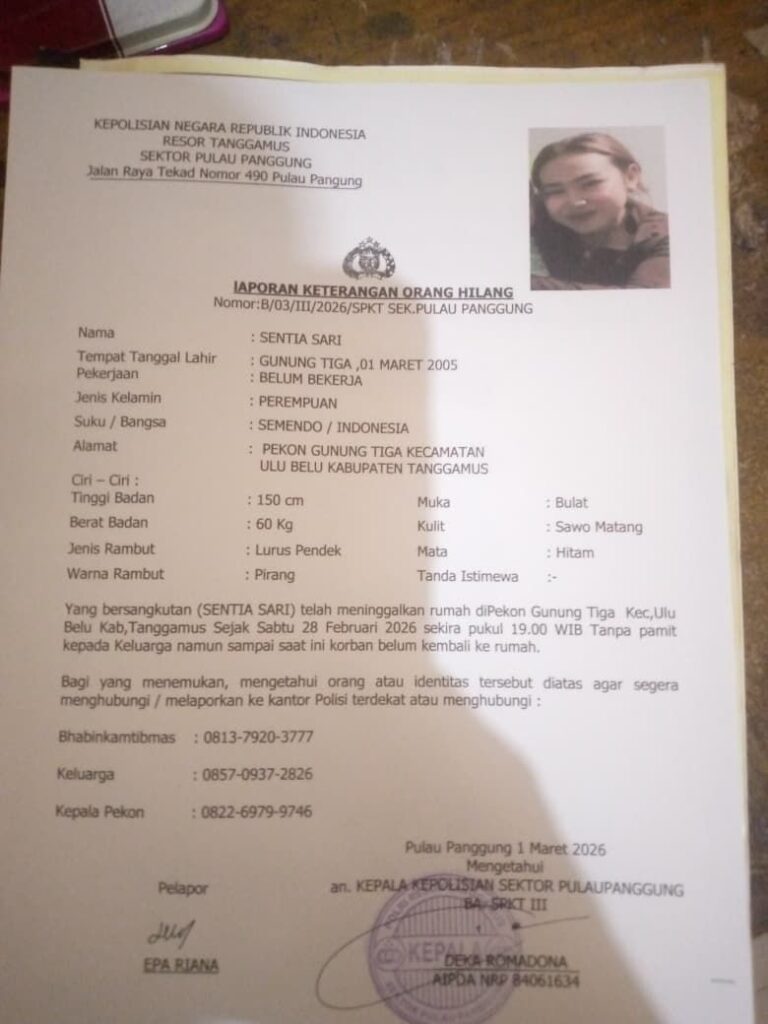 Tanggamus, Lampung – Eko Nurjaman, ayah kandung Sentia Sari, meledakkan kekecewaan mendalam kepada awak media terkait penanganan kasus anaknya yang dibawa kabur oleh Aprijal pada 28 Februari 2026. “Saya sangat tidak puas! Saya sudah melaporkan kejadian ini ke Polsek Pulau Panggung, tapi sampai sekarang tidak ada kemajuan signifikan sama sekali,” tegas Eko dengan nada marah.