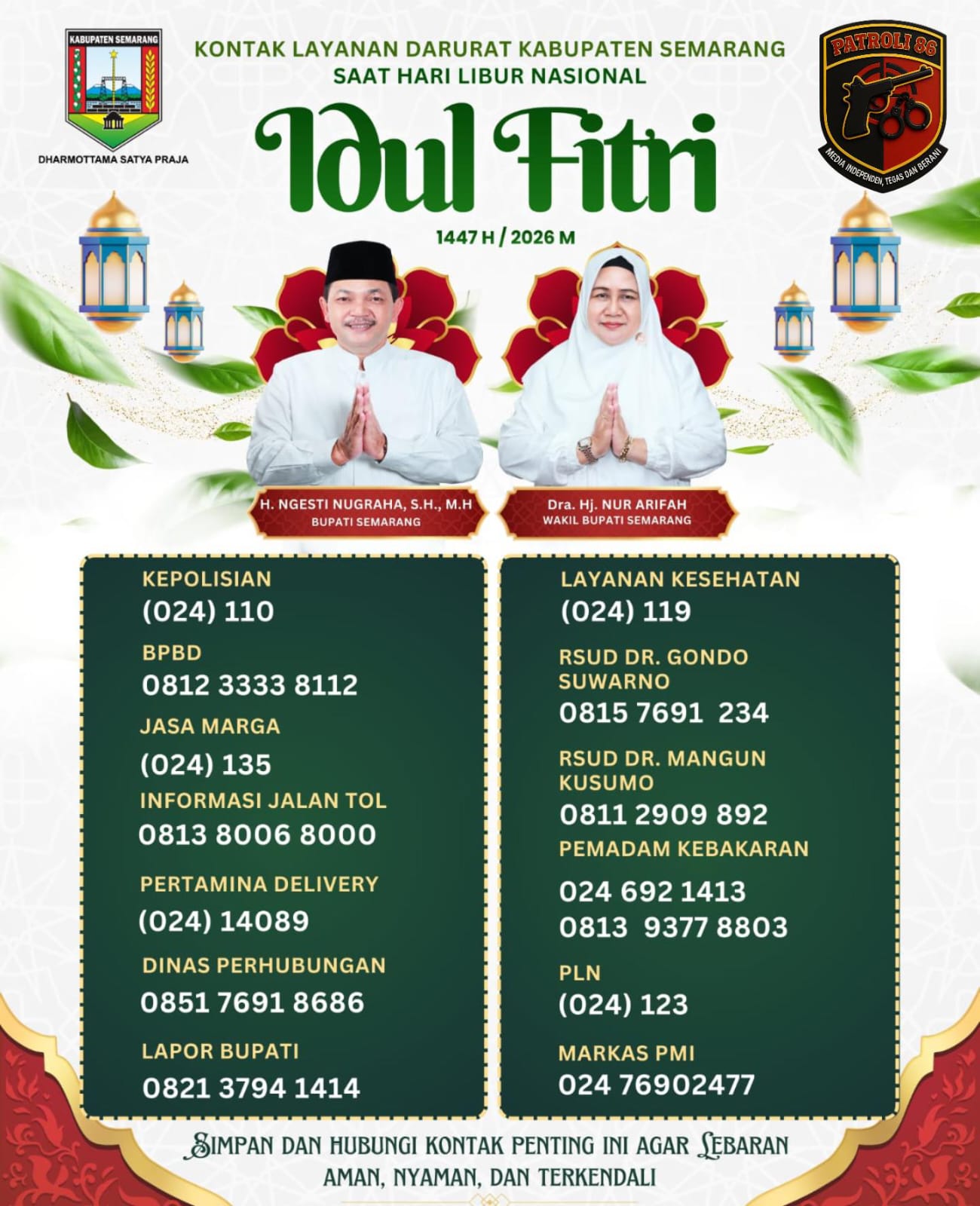 “Kami mengajak seluruh masyarakat untuk menyimpan dan menyebarkan daftar kontak ini kepada keluarga dan kerabat. Dengan demikian, jika terjadi keadaan yang tidak diinginkan, kita dapat segera mengambil langkah yang tepat dan mendapatkan bantuan dengan cepat. Semoga Idul Fitri tahun ini menjadi momen yang penuh berkah, aman, nyaman, dan terkendali bagi semua orang,” pungkas Bupati Ngesti.
