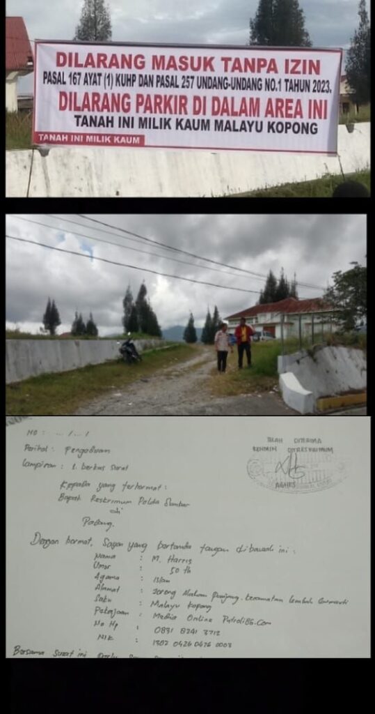 SUMBAR – INVESTIGASIKRIMINAL.COM – Kepala Perwakilan (Kaperwil) media online Patroli86 wilayah Sumatera Barat, M Haris, menyatakan akan segera mempertanyakan status dan tindak lanjut kasus pengrusakan spanduk serta banner milik komunitas atau kelompok Melayu Kopong.