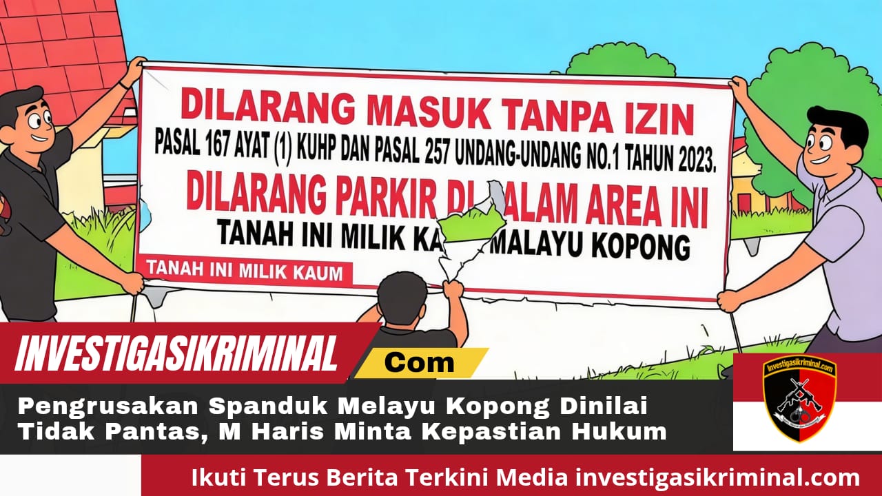 SUMBAR – INVESTIGASIKRIMINAL.COM – Kepala Perwakilan (Kaperwil) media online Patroli86 wilayah Sumatera Barat, M Haris, menyatakan akan segera mempertanyakan status dan tindak lanjut kasus pengrusakan spanduk serta banner milik komunitas atau kelompok Melayu Kopong.